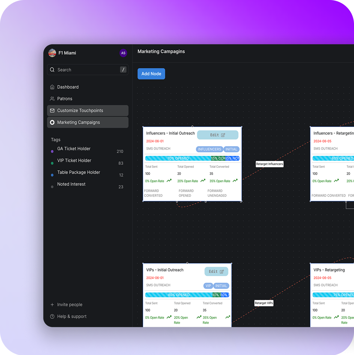Orchestrate guest journeys with automated loyalty, CRM intelligence, and segmented communication, going far beyond basic event coordination.